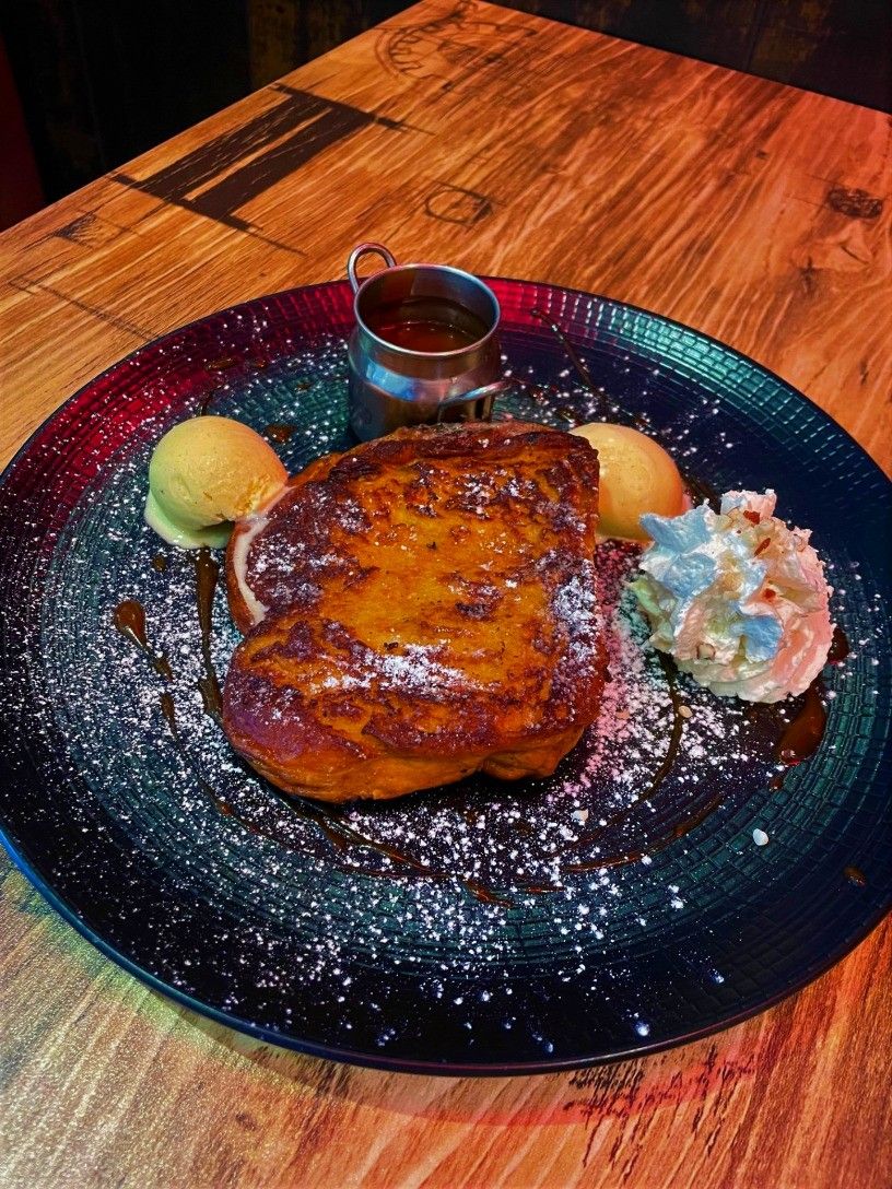 Brioche façon pain perdu glace vanille chantilly et caramel beurre salé